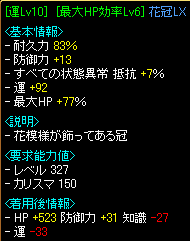 運とHP物です。ベースが花冠LXでカリスマが150必要なこともあって、なんだか安く買えました。